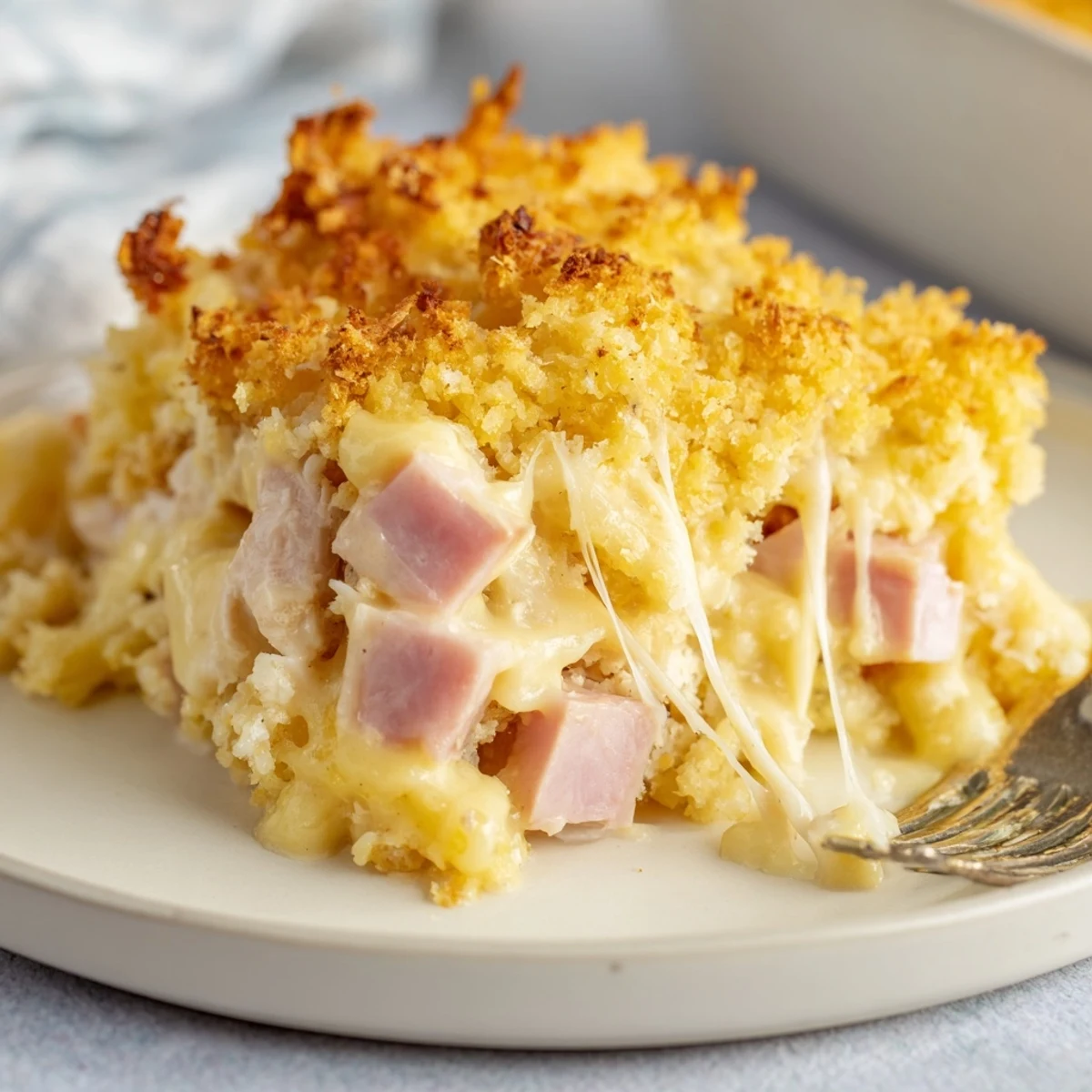 Letting the casserole rest after baking isn’t just patience—it helps the sauce set up so each serving lifts out neatly. If the chicken or ham seem watery, pat them dry first so the sauce doesn’t get diluted. Resist adding more milk; thick sauce is your friend here.