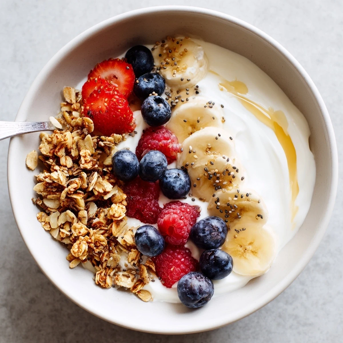 - Scatter granola and, if you like, sprinkle chia seeds so every bite gets a little snap.