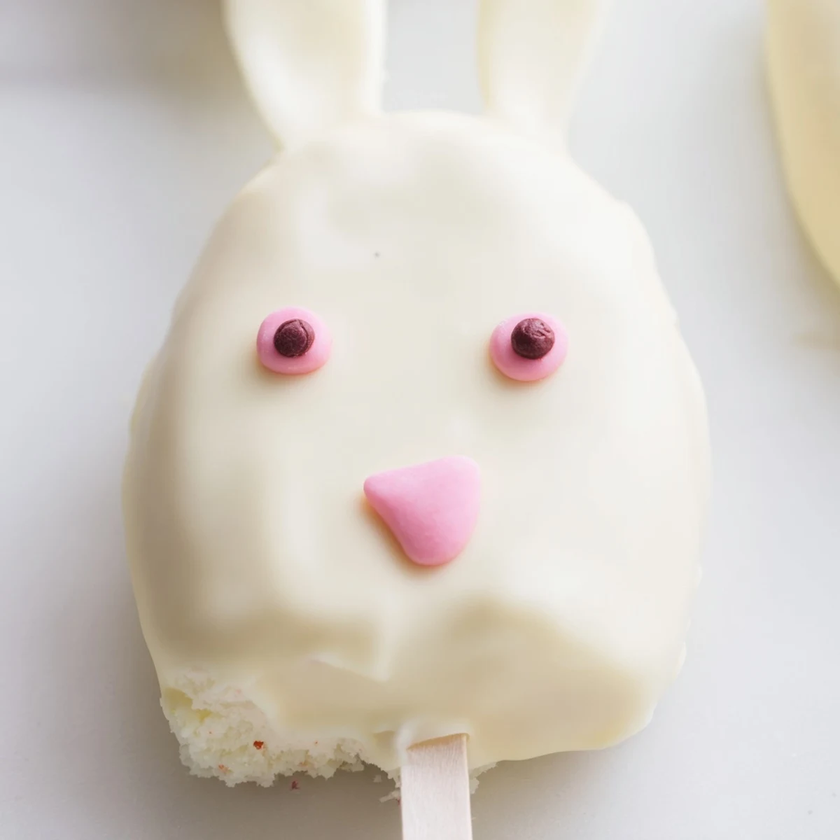 - Divide into 8 portions and form flattened ovals that resemble little bunny faces, then insert sticks and refrigerate until firm.